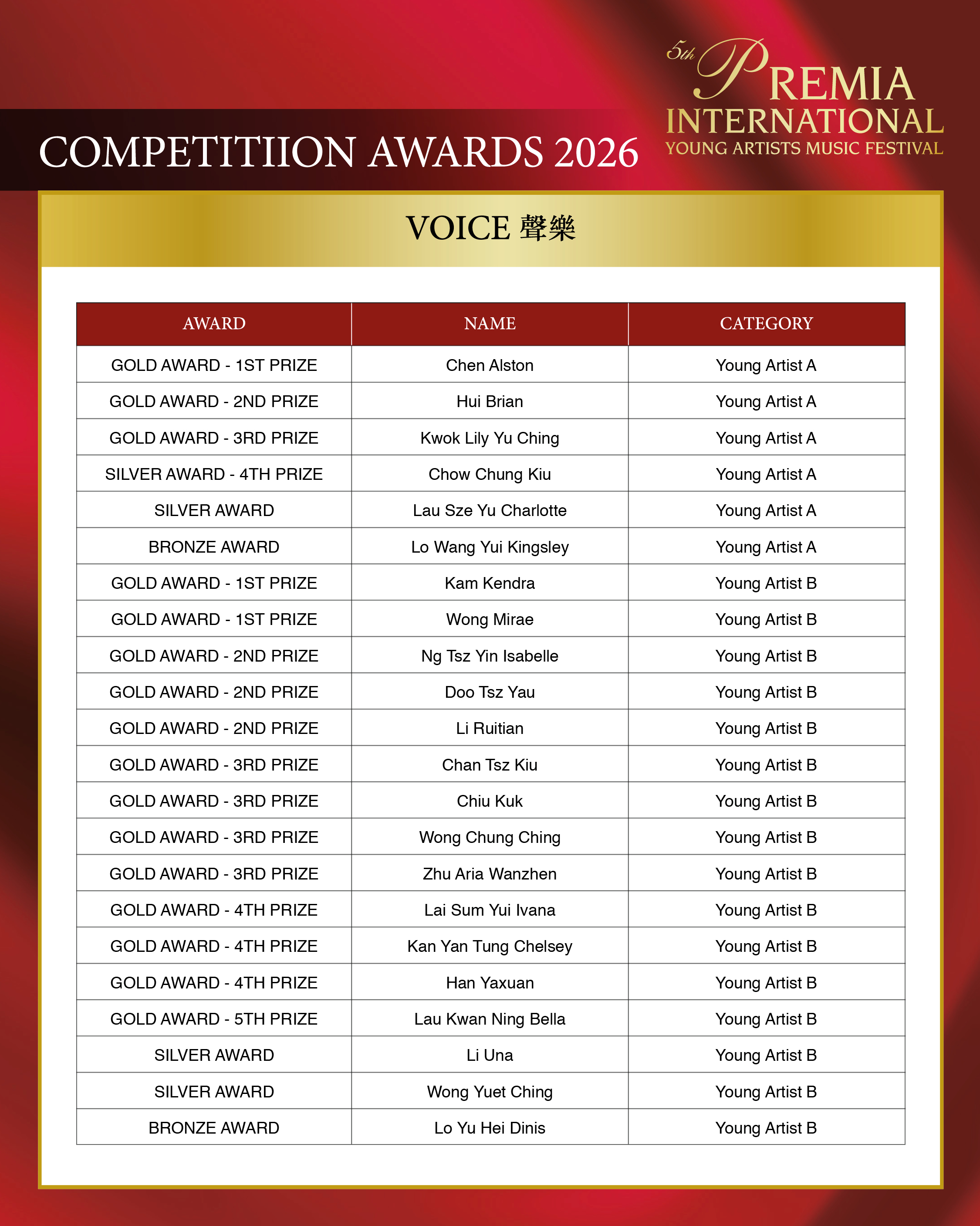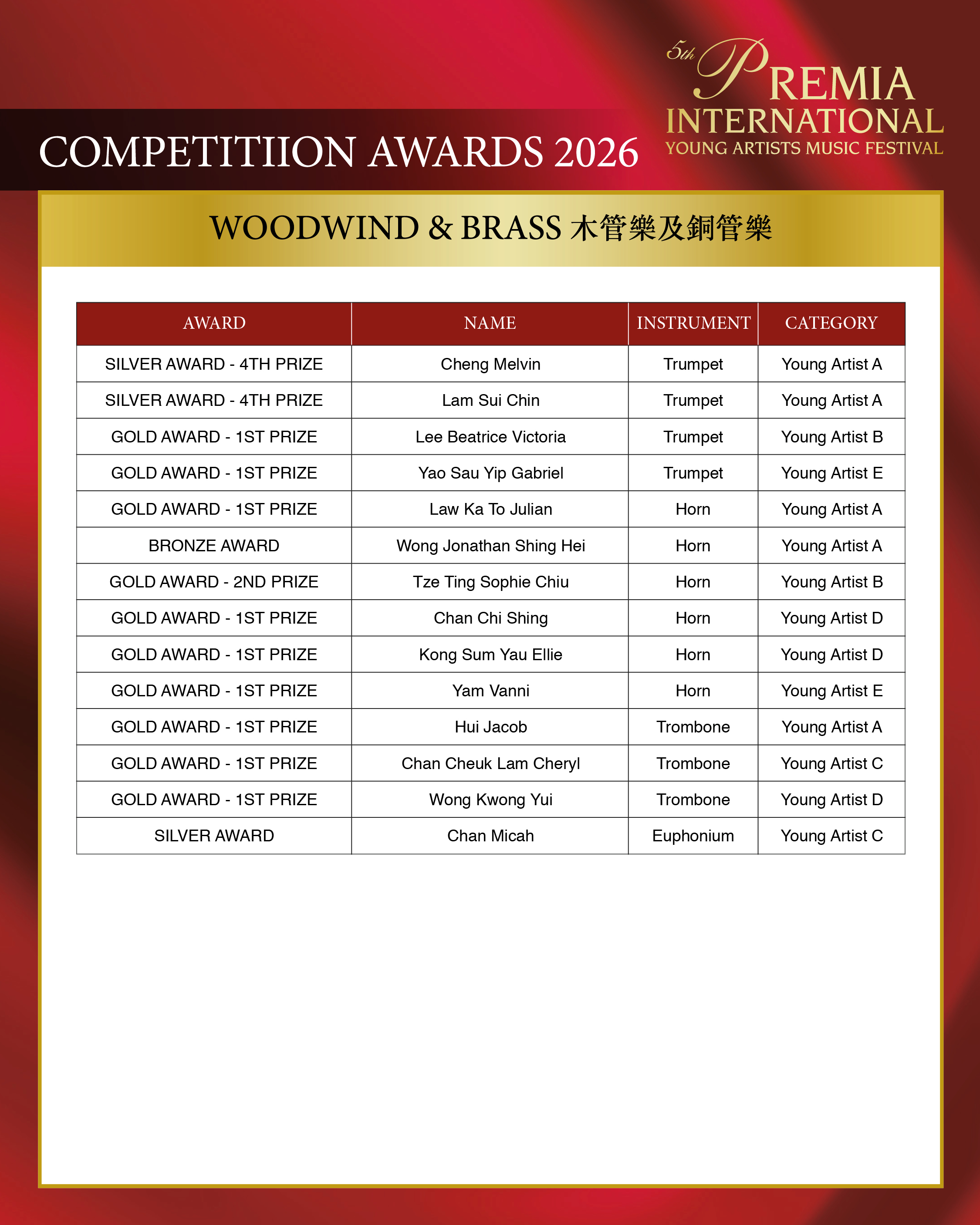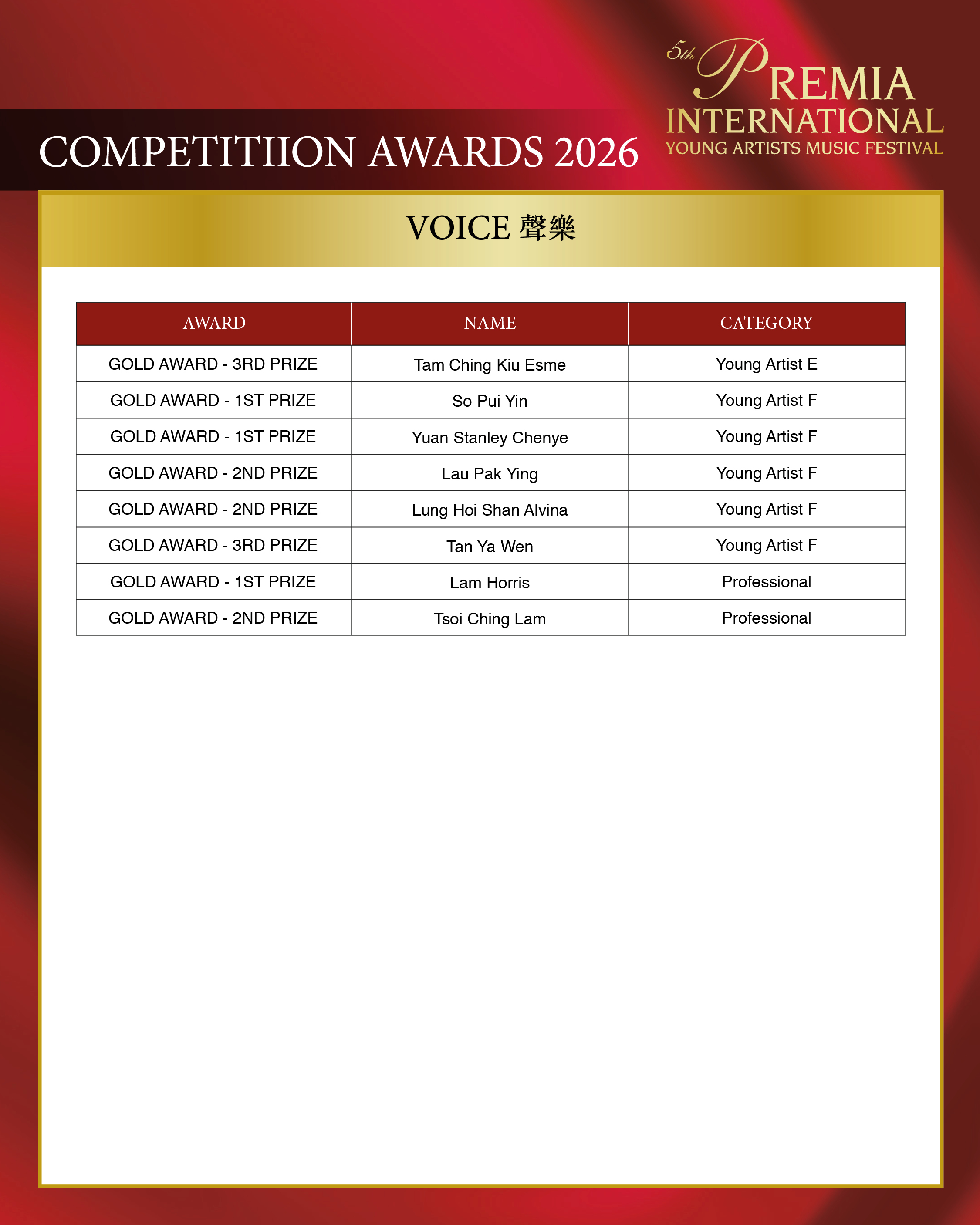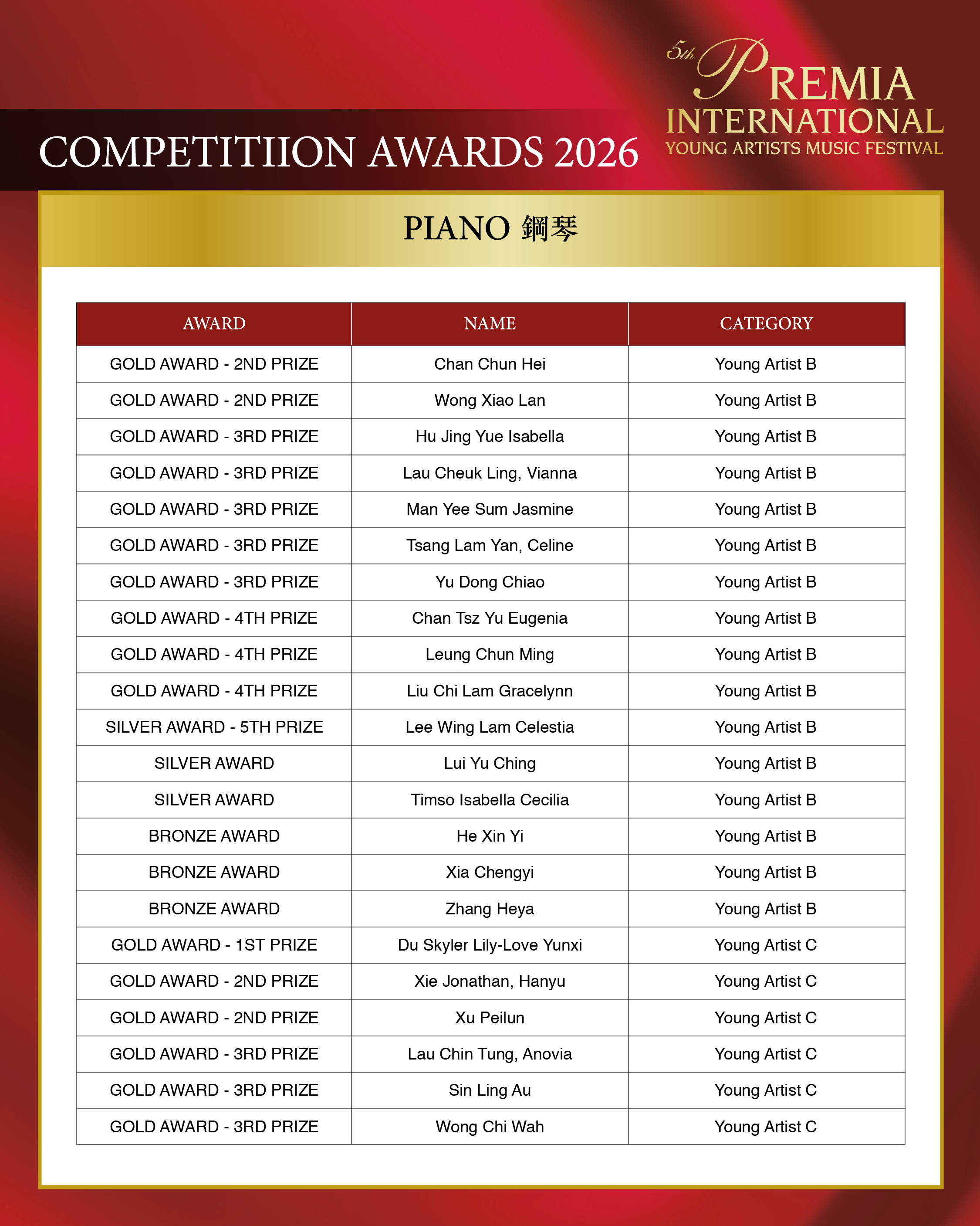 ALL COMPETITION AWARDS 2026