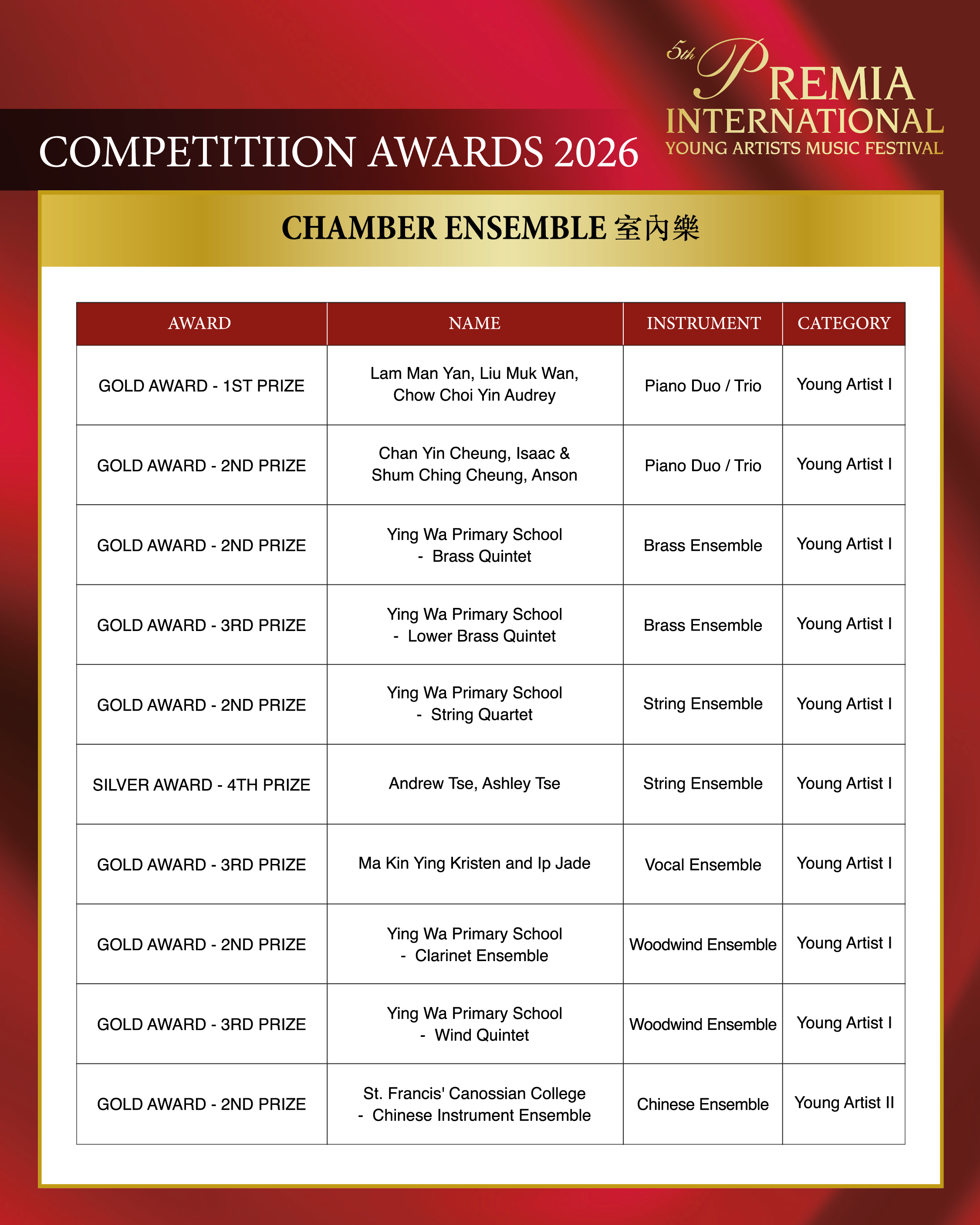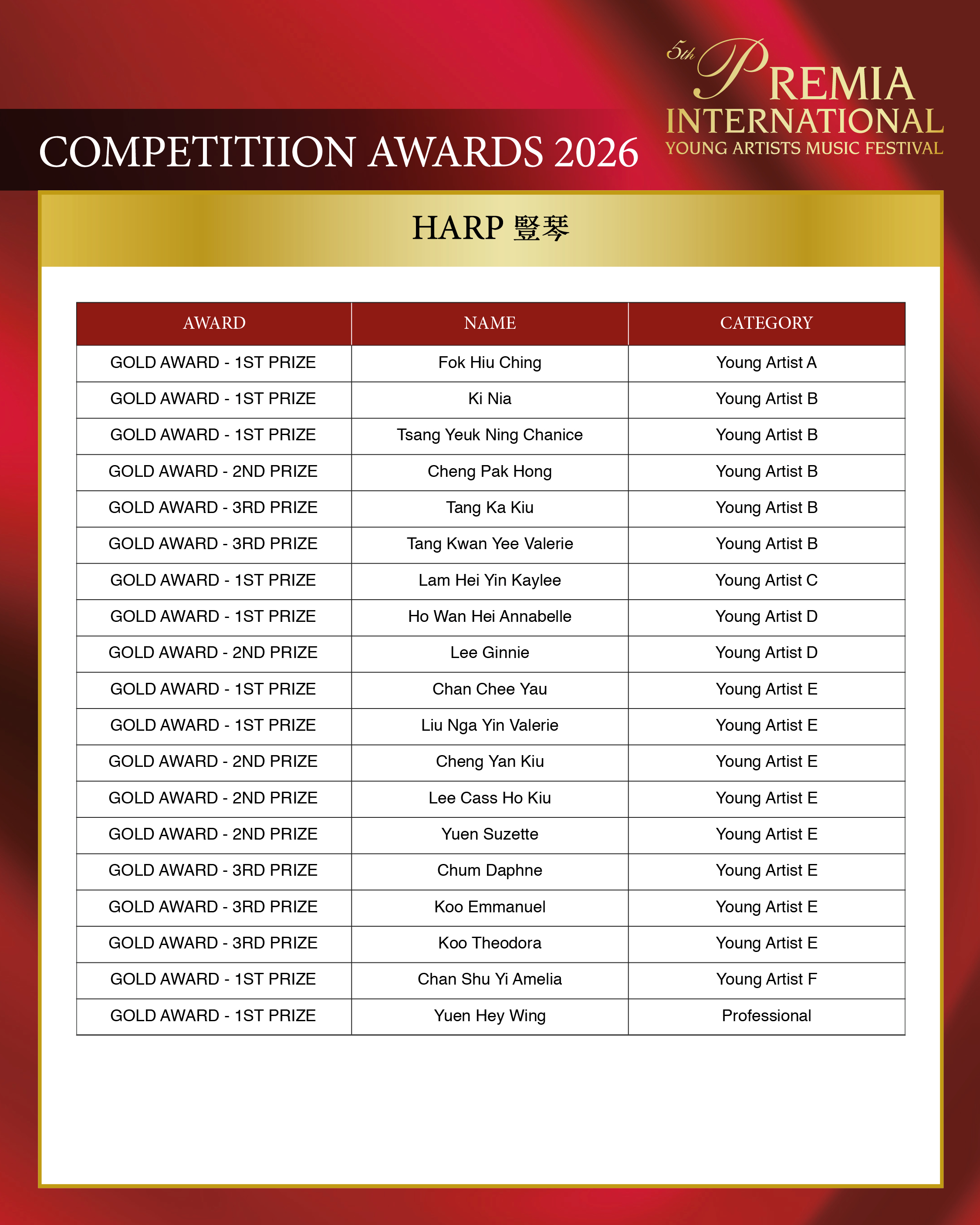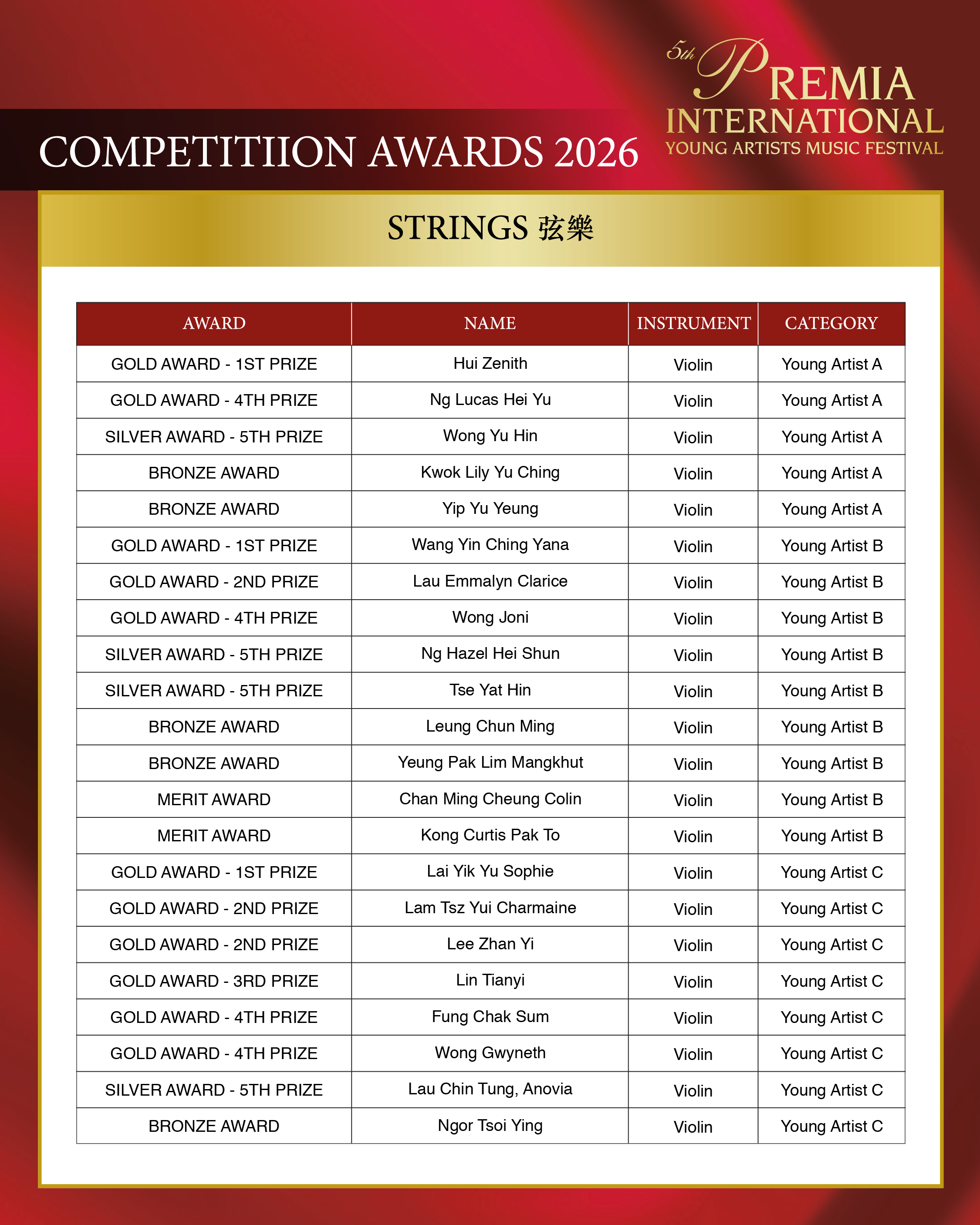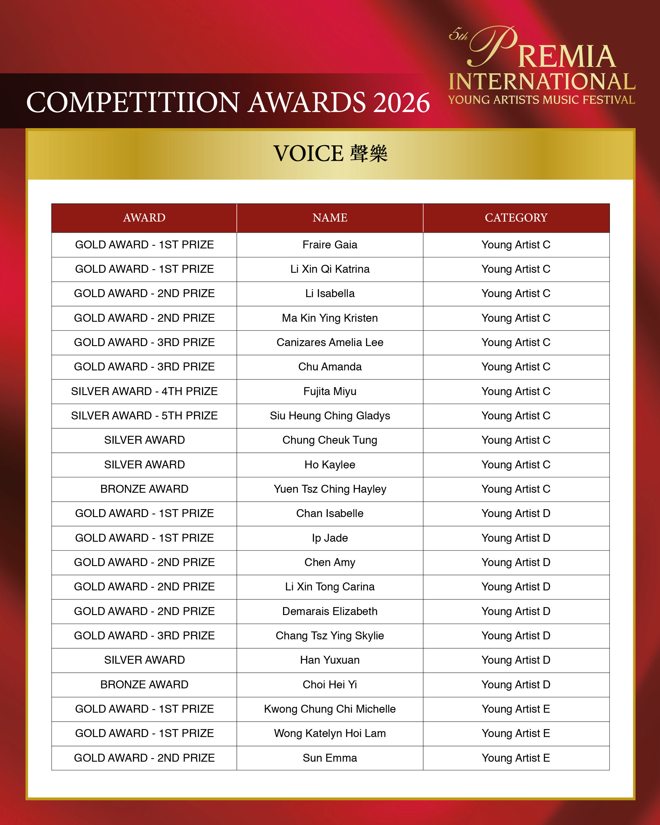 ALL COMPETITION AWARDS 2026