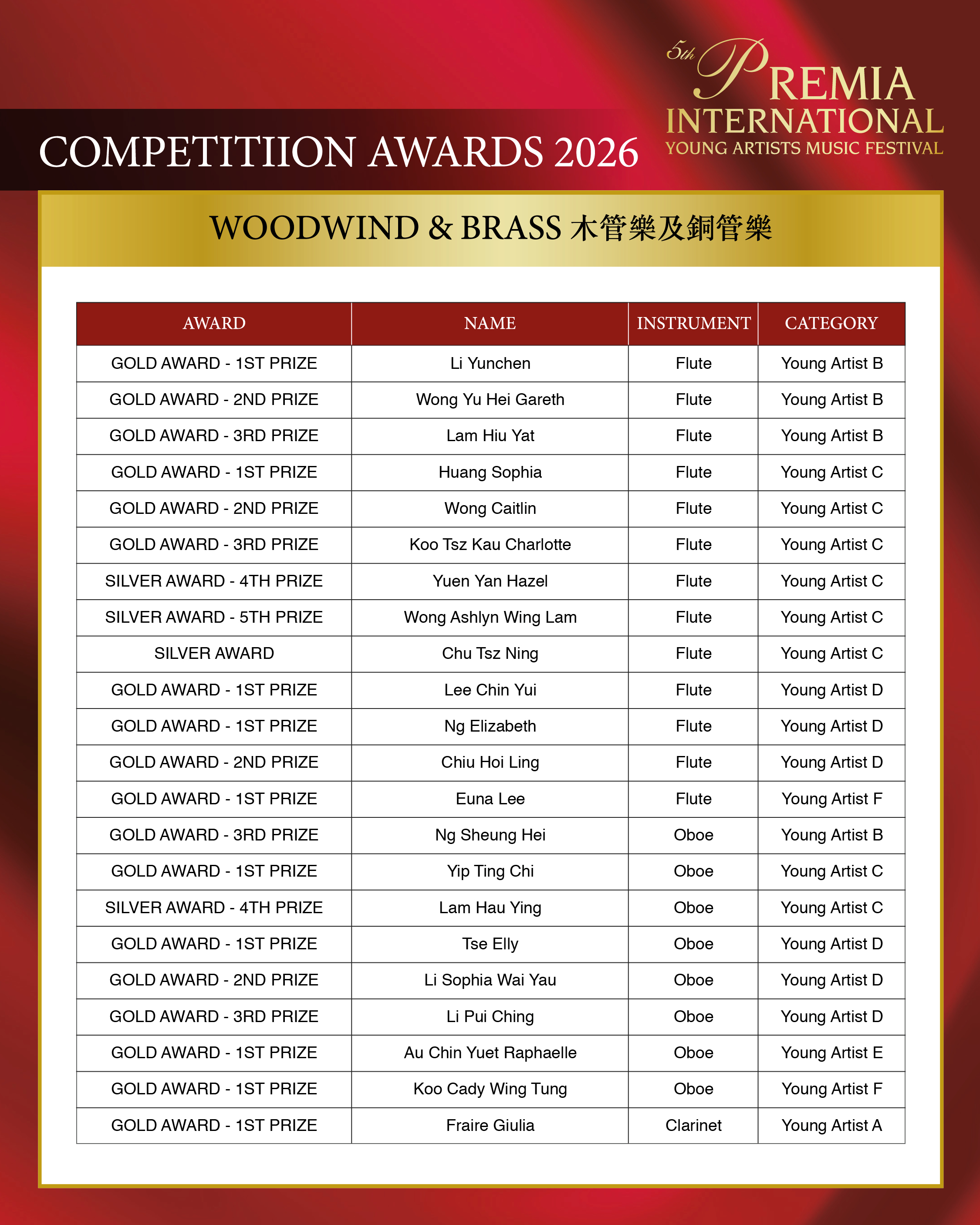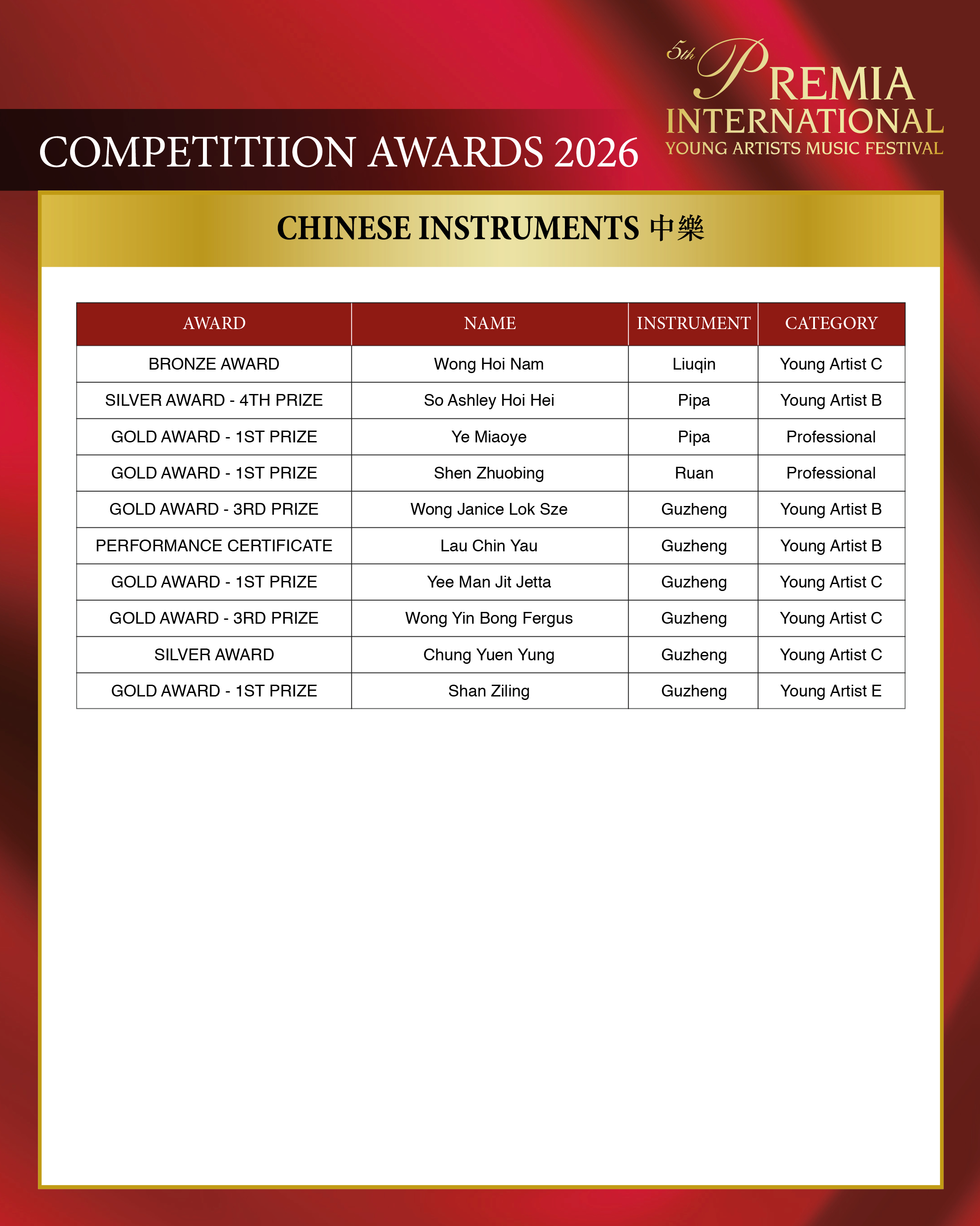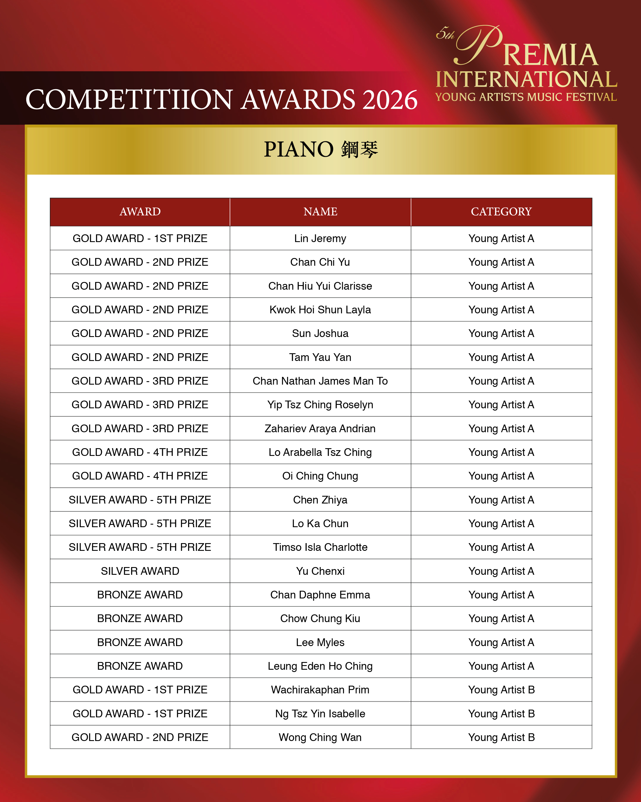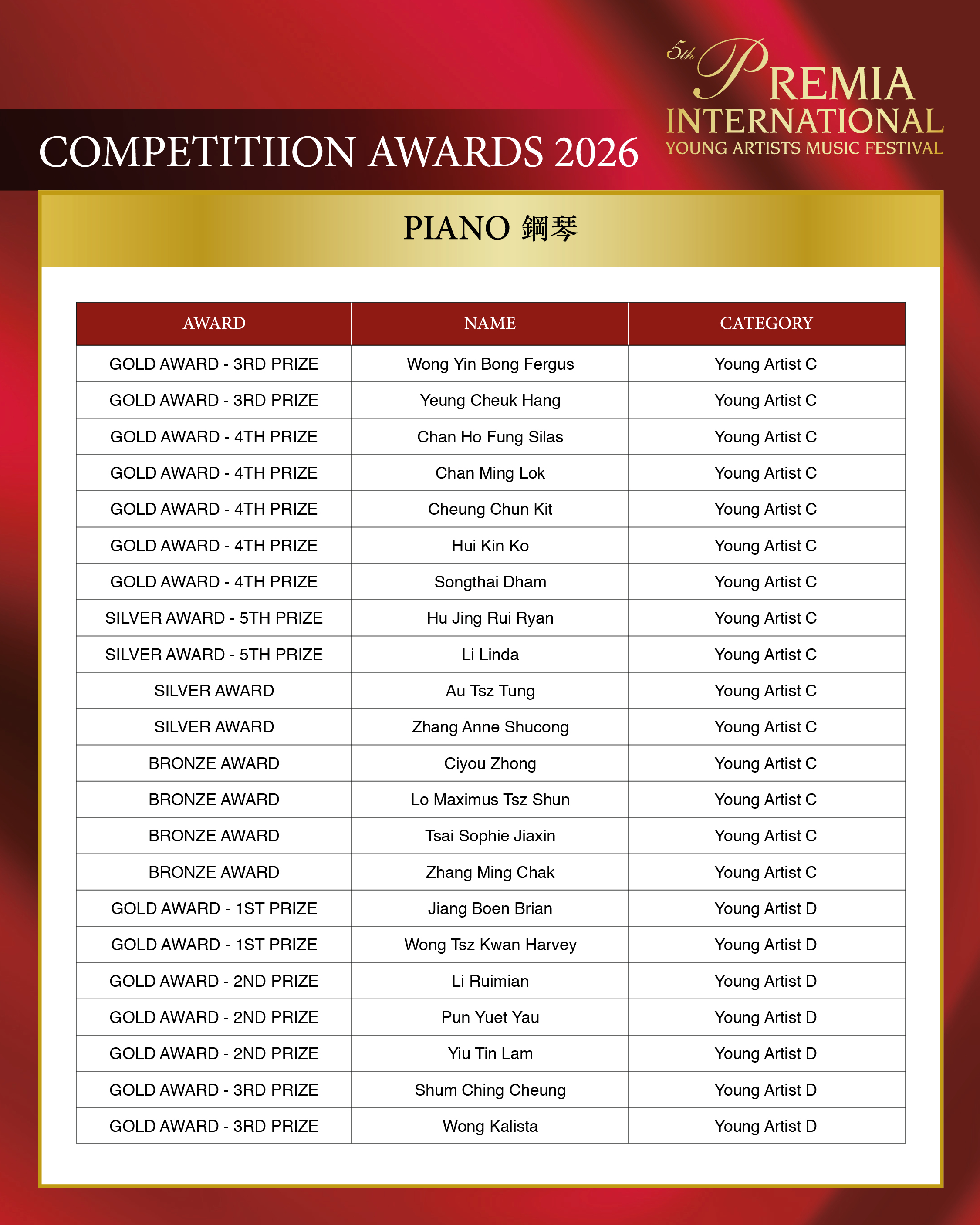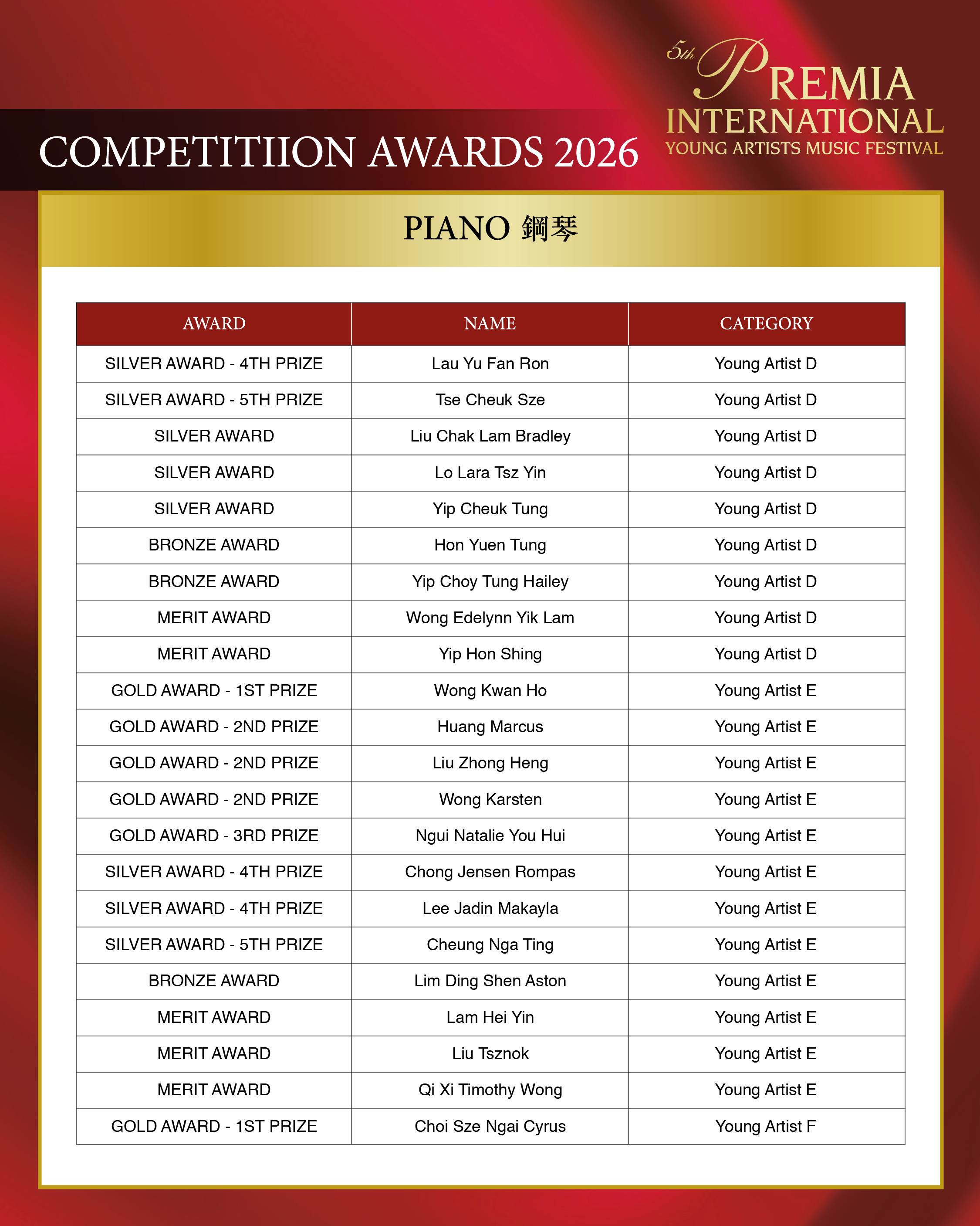 ALL COMPETITION AWARDS 2026