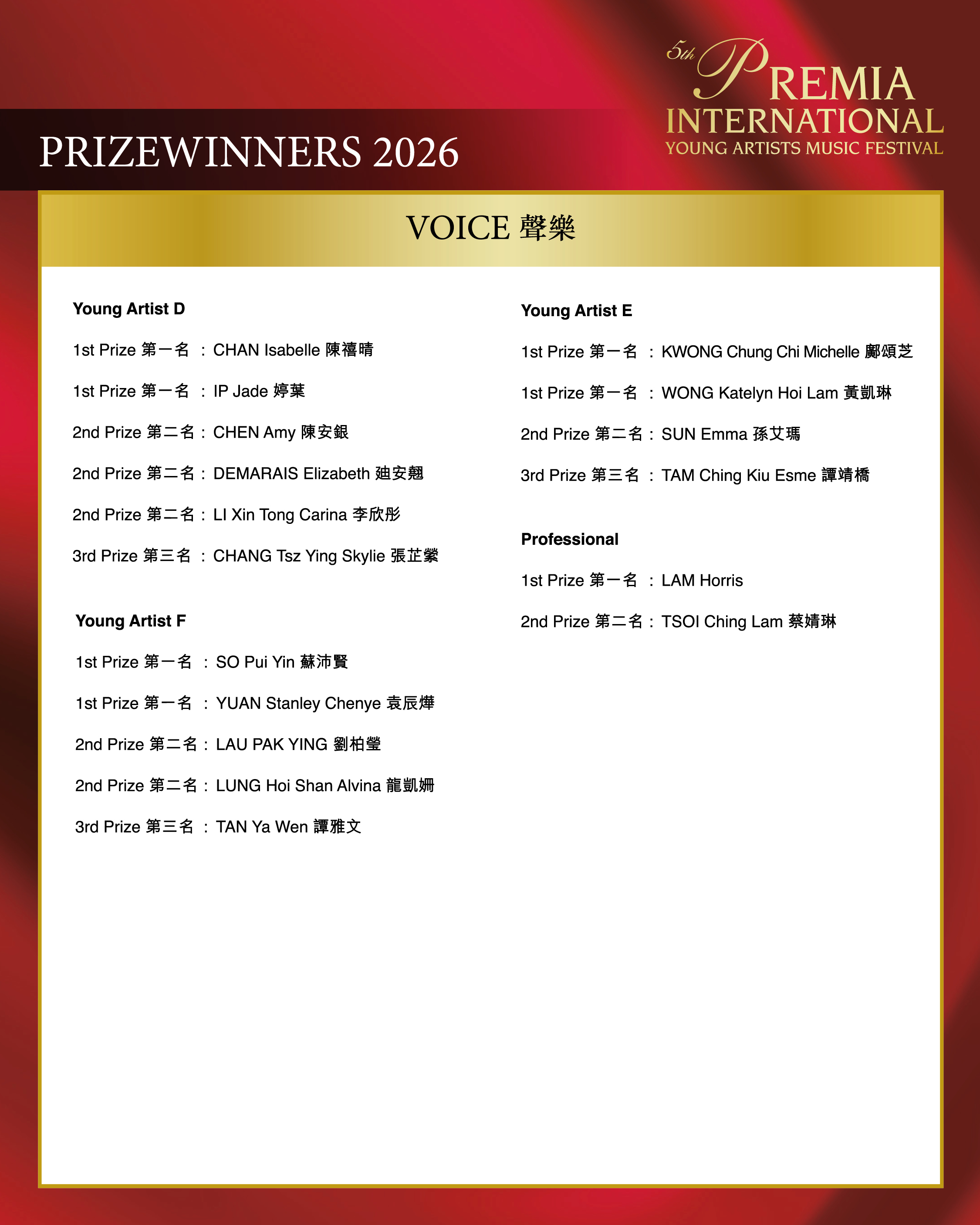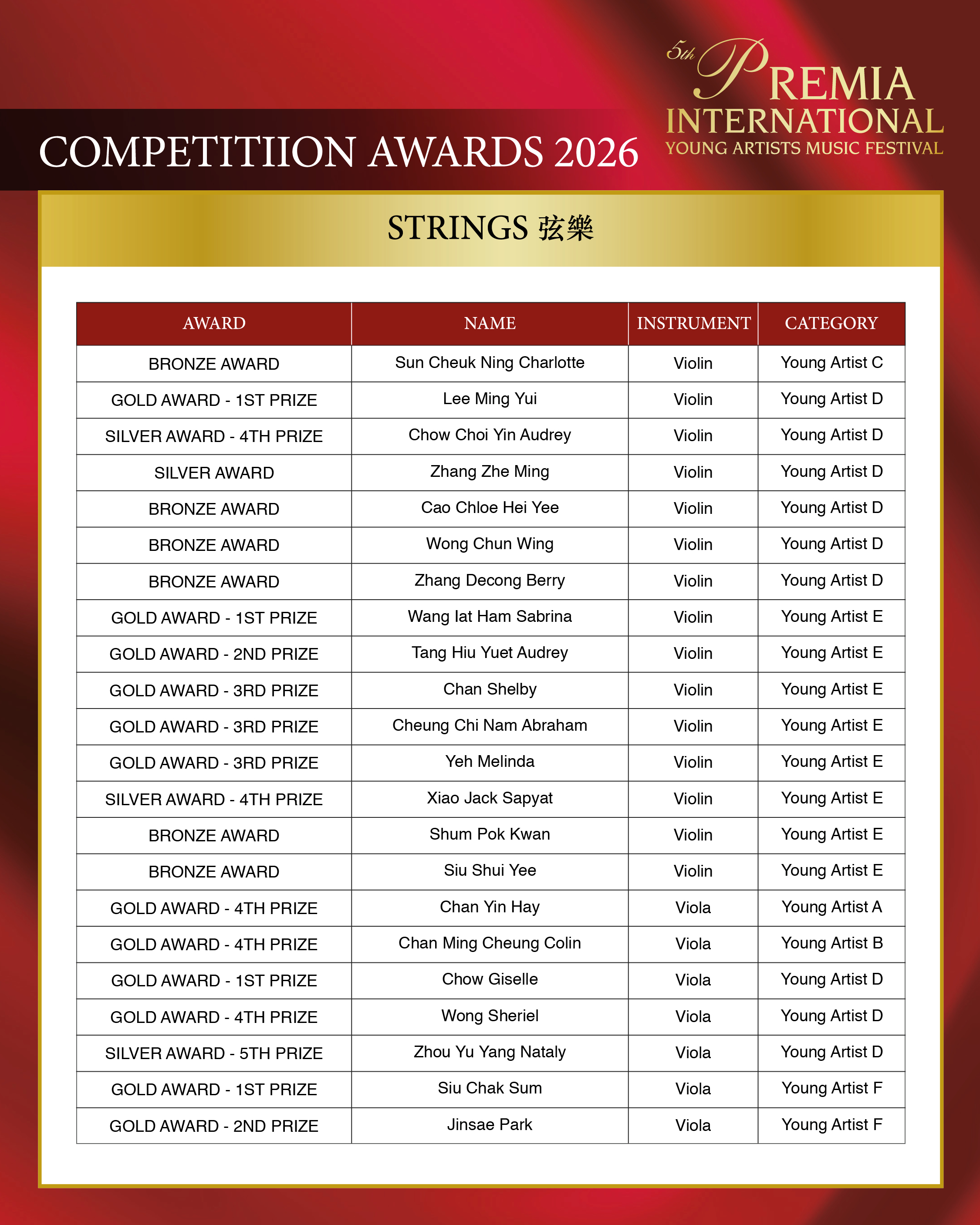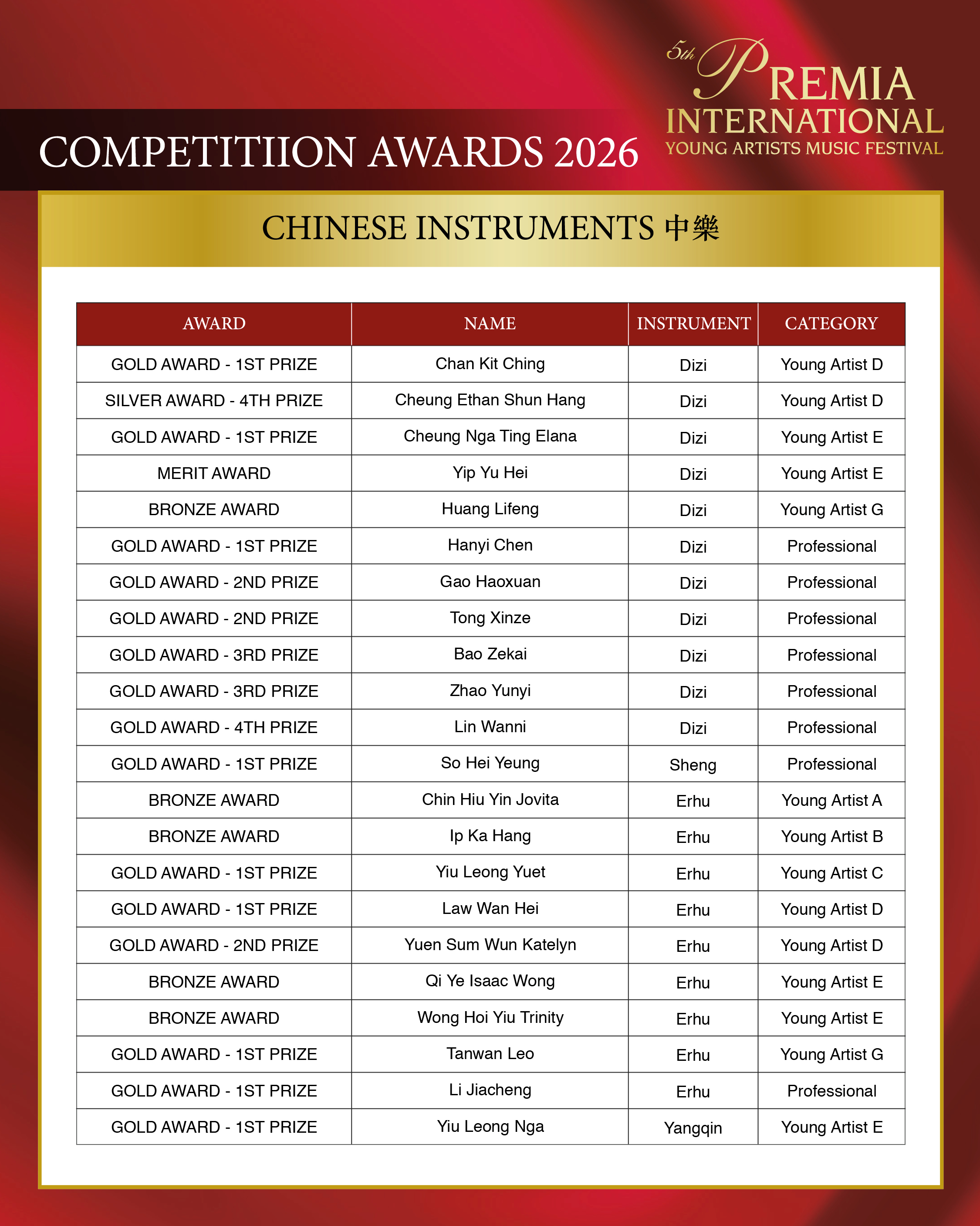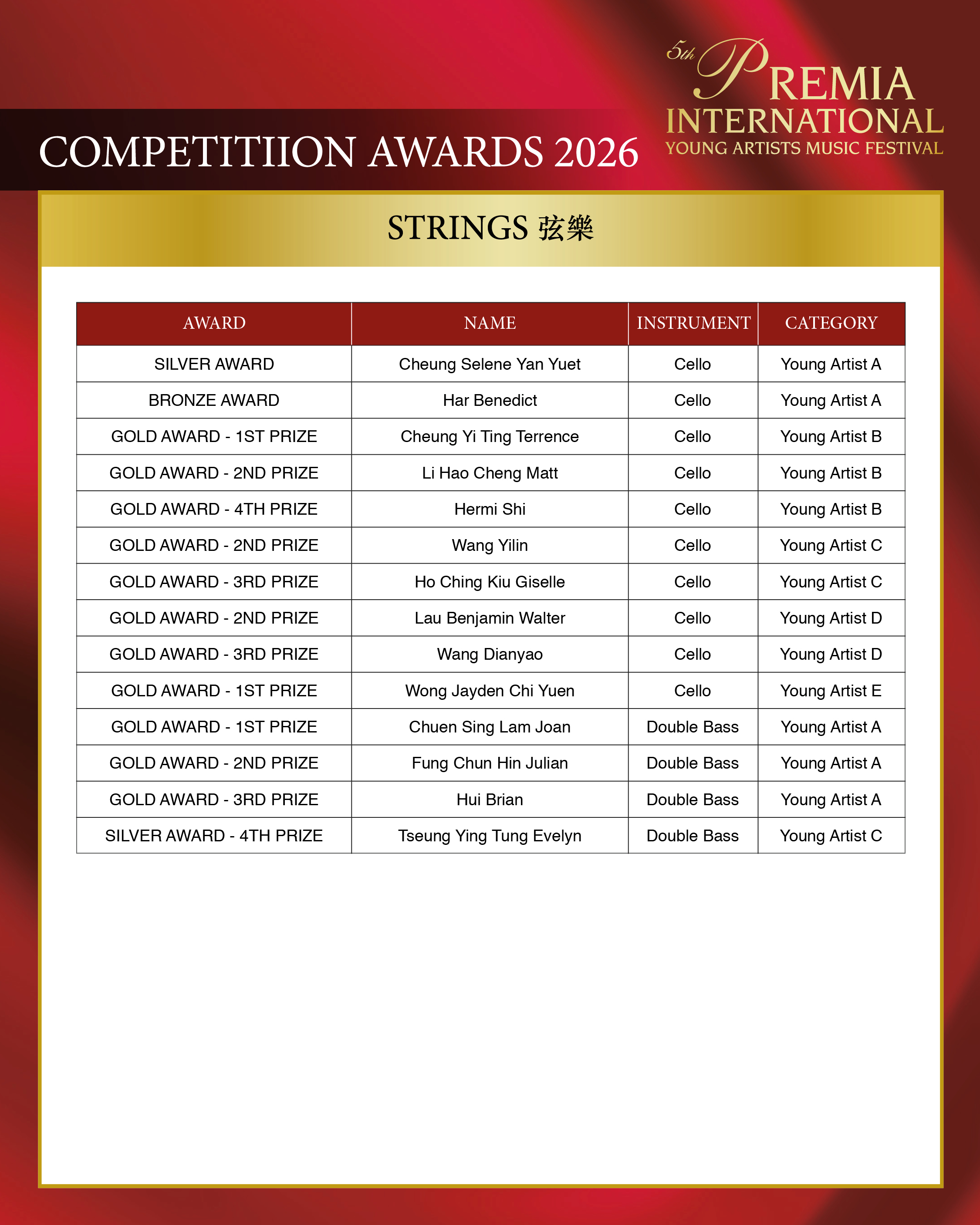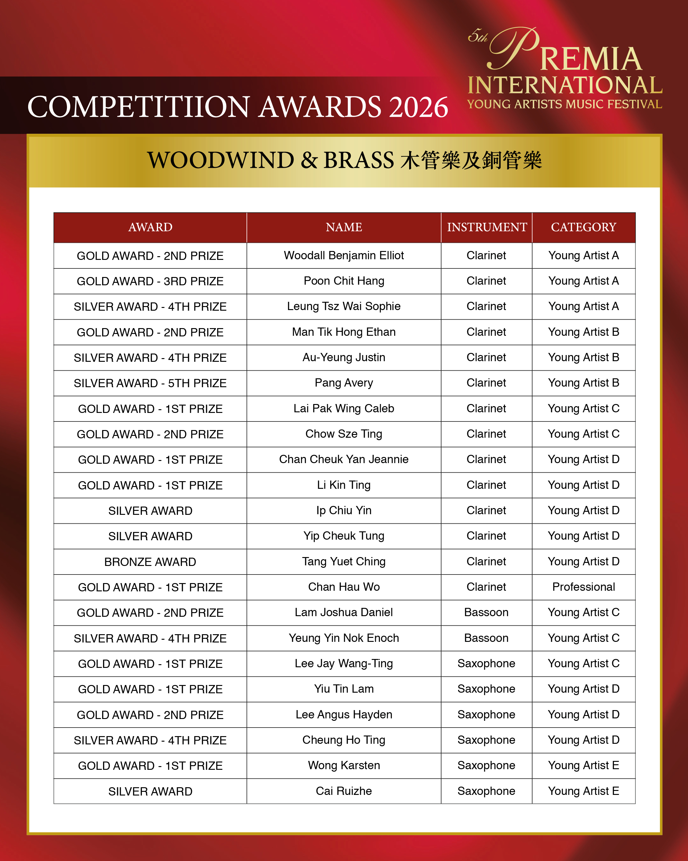 ALL COMPETITION AWARDS 2026