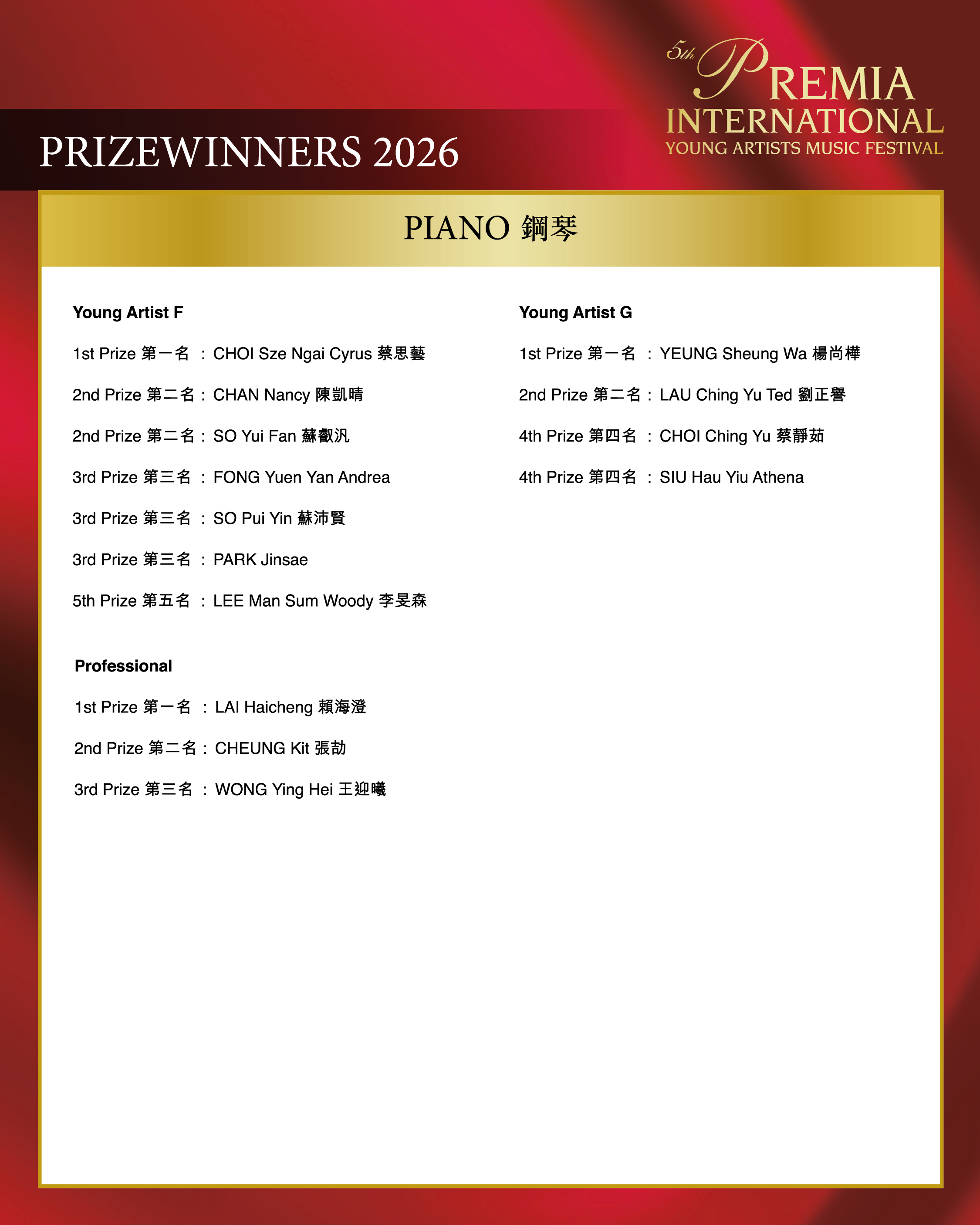 Prizewinners 2026